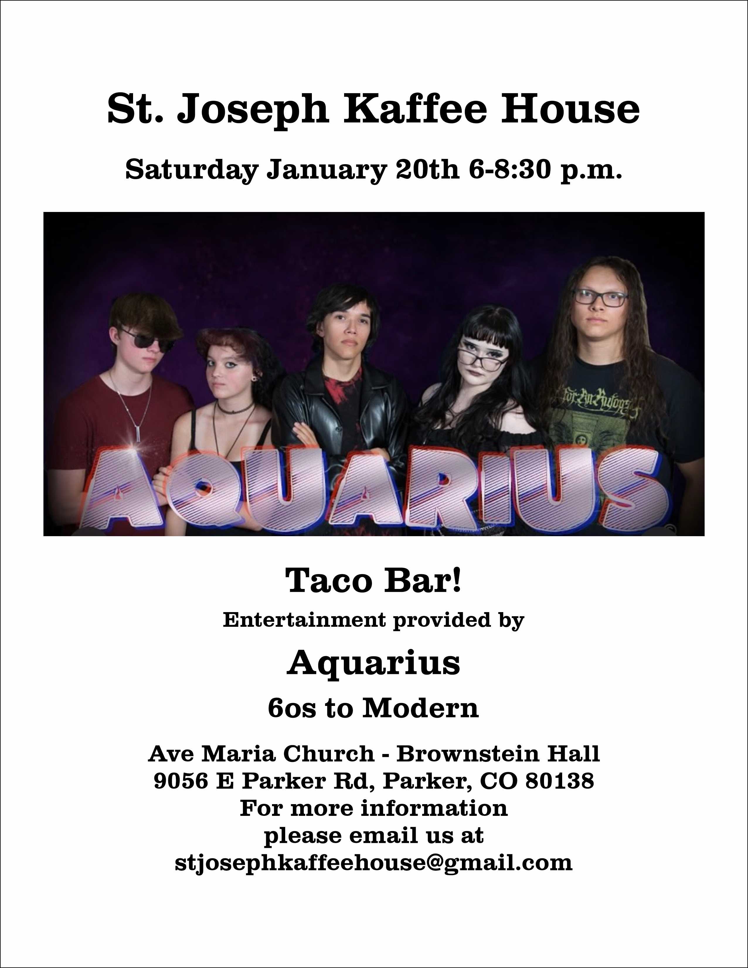 Entertainment provided by Aquarius 60's to Modern